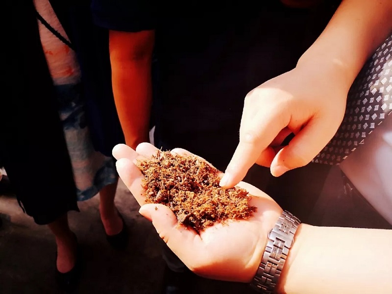 餐廳負(fù)責(zé)人在殘廚處理間隨手抓起一把加工后的廚余垃圾干料,向來(lái)訪嘉賓詳細(xì)介紹,“你看這里頭沒有殼,也沒有塑料制品,分解得非常好,這是我們的一大亮點(diǎn)。”