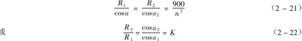 此處的K為內層球半徑與外層球半徑之比,或內層球的與外層球的脫離角的余弦之比。當最外層球的半徑被看作即磨機的半徑時,它就是最內層球的半徑與磨機內半徑之比。顯然,K標志裝球率,因為裝球愈多,R2愈小,K 值也就較小。由公式(2-5)可知