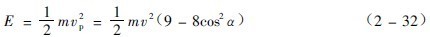 不難證明,此動能即磨機將球由落回點B提升到脫離點A所作的功(A1),和自脫離點用速度v將球拋出所作的功(A2)。因為