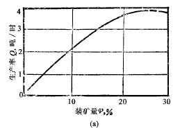 于71~75%范圍內磨機的處理能力更高,轉速率低于或高于這個范圍時處理能力便趨于降低。磨機輸入功率與轉速率的關系和生產率與轉速率的關系相似,按磨碎每噸產品的動力消耗計,則一般隨轉速率降低而減少。