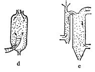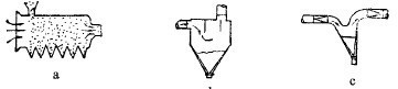 圖1(a)和(e)表示的是在上升氣流中進行的分級器。前者得兩種產物;后面一種,物料從上,氣流從下部供入,可得三產物。