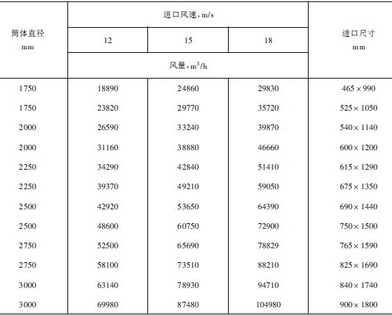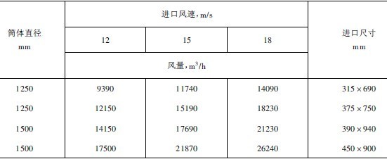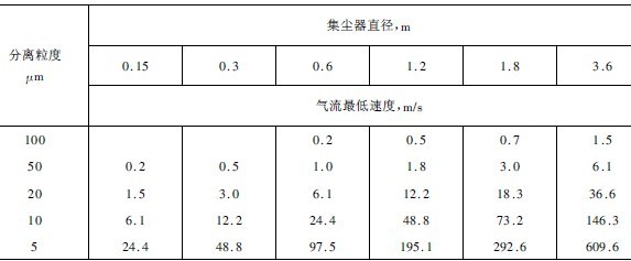 表1旋風集塵器氣流入口速度與分離粒度的關系