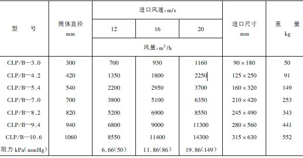 表3 CLP/B型旋風集塵器技術規格(二)