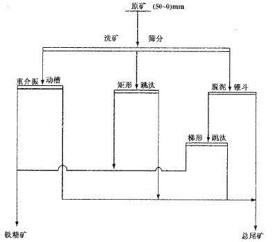 位較高(50%左右),但礦體較薄或夾層較多,采礦時廢石混入,使礦石貧化,對這種礦石可采用只破碎不磨礦,在粒度較粗的情況下,通過重選丟棄粗粒尾礦,從而恢復地質品位。獲得粗粒的中等品位精礦,或進一步加工處理,或直接送高爐冶煉,這種稱為粗粒重選。另一種是對嵌布粒度較細的紅礦或混合礦(即含弱磁性的紅礦和強磁性的磁鐵礦),經破碎,磨礦使鐵礦物單體分離后,通過重選或磁重聯選,得到細粒高品位精礦,這種稱為細粒重選。