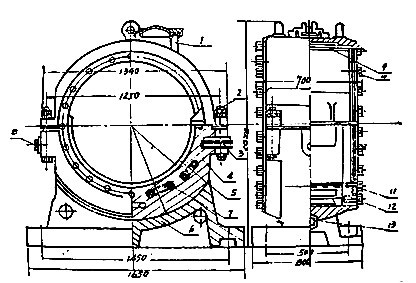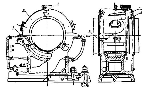 當(dāng)中空軸回轉(zhuǎn)時(shí),在環(huán)行槽內(nèi)充滿(mǎn)了潤(rùn)滑油則同樣起密封作用,潤(rùn)滑油沿著油管9進(jìn)入軸承,油管一端封閉,下部壁上分布許多小孔,潤(rùn)滑油通過(guò)這些小孔,沿著回轉(zhuǎn)中空軸均勻分布,用過(guò)的油,由軸瓦下部接管12和與其相連的集油管而流入循環(huán)油系統(tǒng)的過(guò)濾裝置。